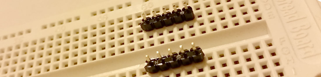 It is better in the long run if these pins are perfectly aligned, so I'm going to help this along by putting the headers in the breadboard to begin with as so: